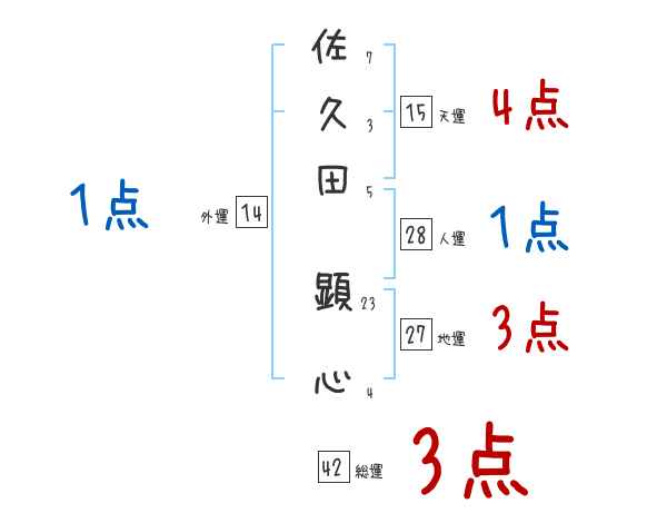 佐久田顕心さんの画数の鑑定結果