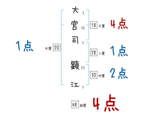 家系が持つ宿命的な運勢を表します。祖先から受け継いだ苗字ですので自分の力が及びません。家柄を象徴します。