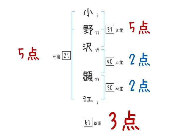 小野沢顕江さんの画数の鑑定結果