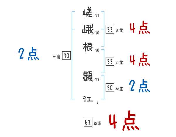 嵯峨根顕江さんの画数の鑑定結果
