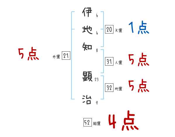 伊地知顕治さんの画数の鑑定結果