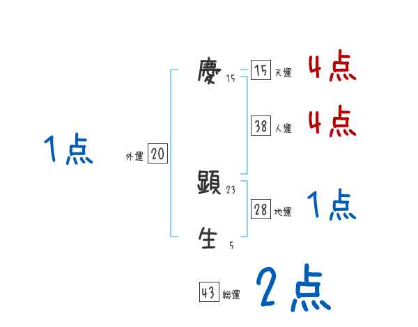 慶顕生さんの画数の鑑定結果