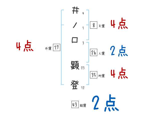 外運![]() | 井ノ口顕登さんの外運は17画の4つ星!積極的な行動力。地位を気づき財産を手に入れる。純粋な心と直感力。 生活面を象徴する運勢です。外部から受ける影響力を表し、結婚運、家庭運や職場、環境への順応性を表します。 |
