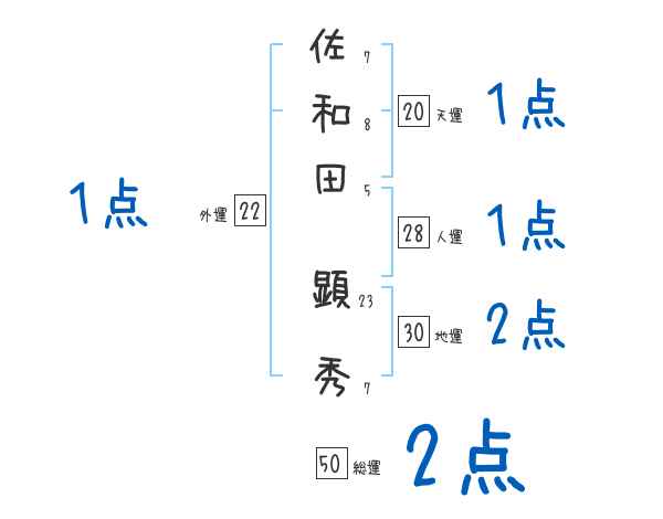 佐和田顕秀さんの外運は22画の1つ星