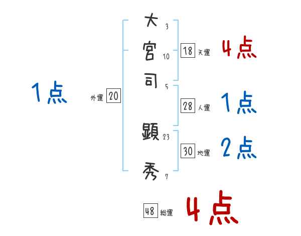 大宮司顕秀さんの画数の鑑定結果