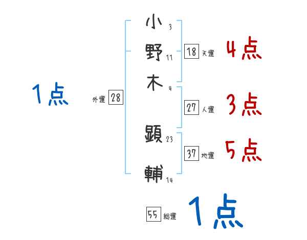 外運![]() | 小野木顕輔さんの外運は28画の1つ星!家庭環境に注意。スポーツで活躍できる能力があるかも。 生活面を象徴する運勢です。外部から受ける影響力を表し、結婚運、家庭運や職場、環境への順応性を表します。 |