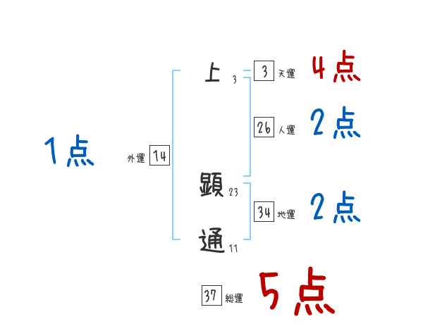 天運![]() | 上顕通さんの天運は3画の4つ星!活動的で才能に恵まれ、多くの信頼を得る。希望に満ち成長する。 家系が持つ宿命的な運勢を表します。祖先から受け継いだ苗字ですので自分の力が及びません。家柄を象徴します。 |