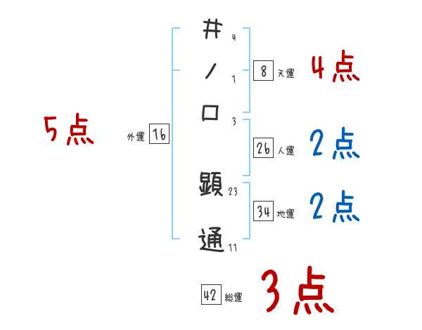 外運![]() | 井ノ口顕通さんの外運は16画の5つ星!人望が厚く大きく発展する。逆転成功が見える。 生活面を象徴する運勢です。外部から受ける影響力を表し、結婚運、家庭運や職場、環境への順応性を表します。 |
