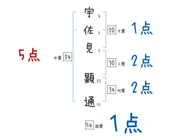 外運![]() | 宇佐見顕通さんの外運は24画の5つ星!家庭運が良く順調な人生。金運にも恵まれる。 生活面を象徴する運勢です。外部から受ける影響力を表し、結婚運、家庭運や職場、環境への順応性を表します。 |