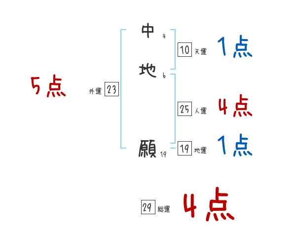 中地願さんの画数の鑑定結果