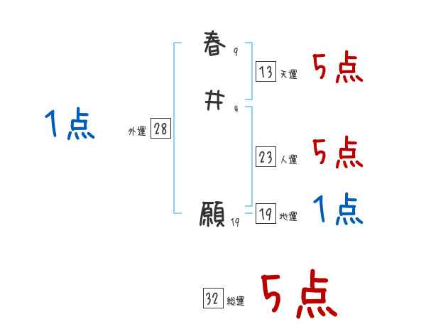 春井願さんの画数の鑑定結果