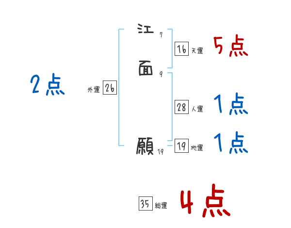 江面願さんの画数の鑑定結果
