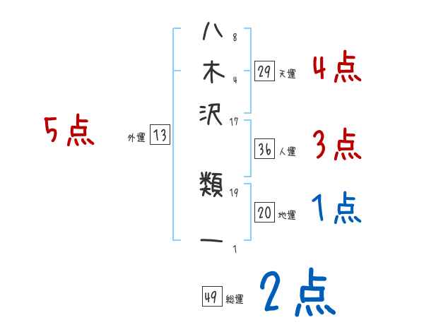 八木沢類一さんの画数の鑑定結果