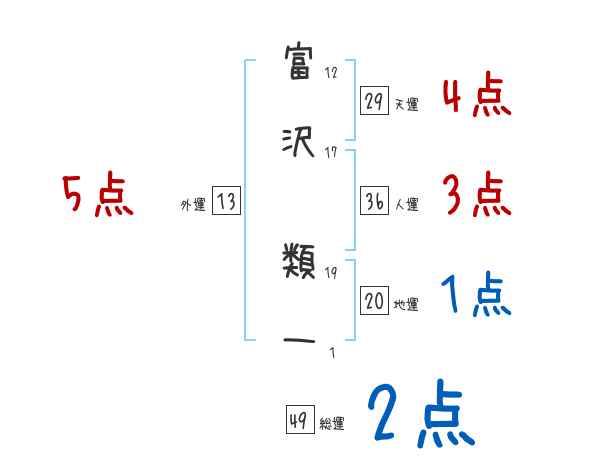 富沢類一さんの画数の鑑定結果