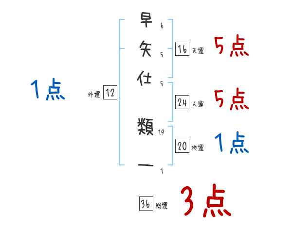 早矢仕類一さんの画数の鑑定結果
