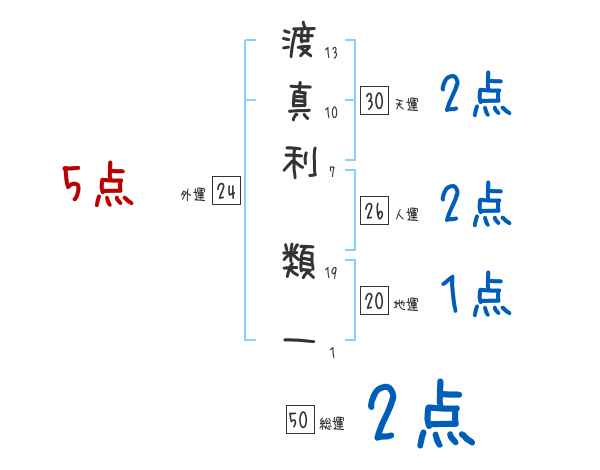 渡真利類一さんの画数の鑑定結果