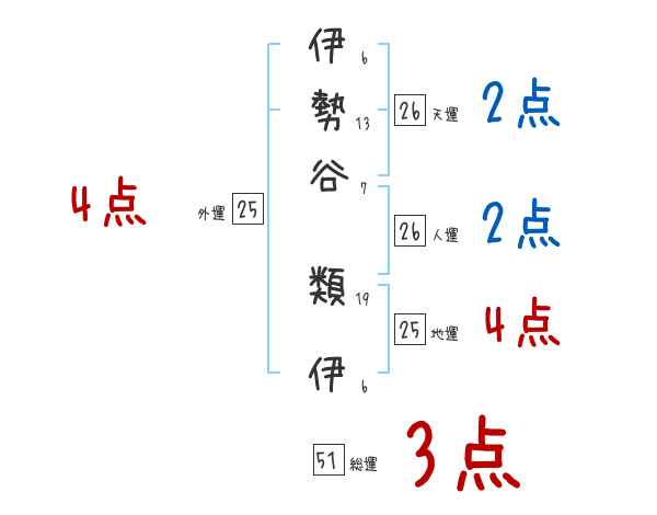 伊勢谷類伊さんの画数の鑑定結果