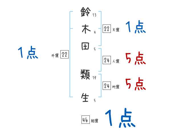 鈴木田類生さんの画数の鑑定結果