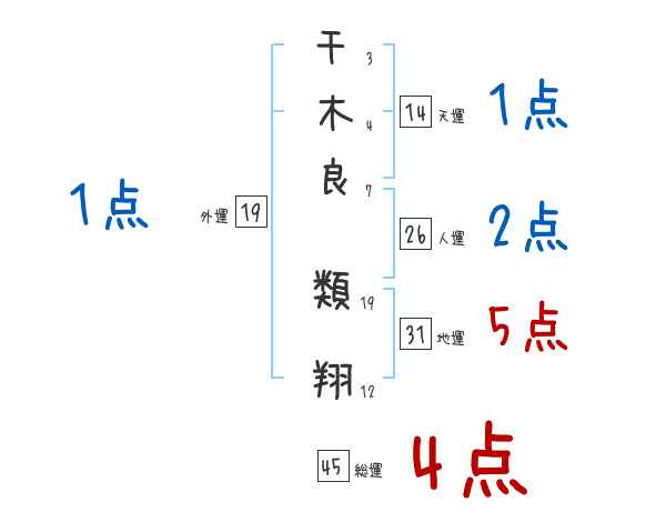 地運![]() | 千木良類翔さんの地運は31画の5つ星!社交性があり判断力に優れる。順風満帆な人生で円満な生活。 個性を表す基礎的な運勢です。性格形成や対人関係、行動力など家庭環境に影響されます。主に誕生してから20歳くらいまでの若年期の運勢を表します。 |