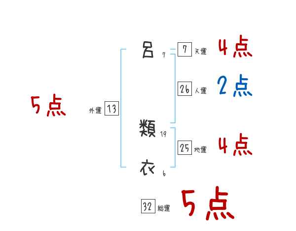 呂類衣さんの総運は32画の5つ星