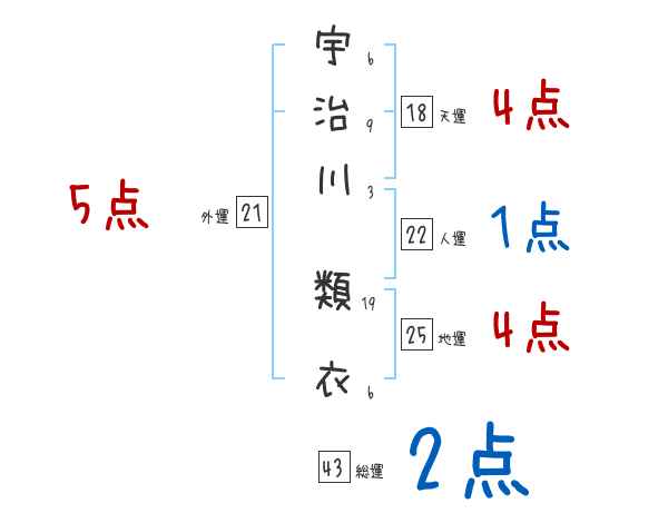 宇治川類衣さんの画数の鑑定結果
