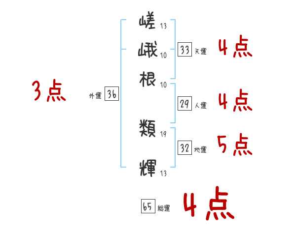 外運![]() | 嵯峨根類輝さんの外運は36画の3つ星!先見性が豊かです。多少神経質で苦労することも。 生活面を象徴する運勢です。外部から受ける影響力を表し、結婚運、家庭運や職場、環境への順応性を表します。 |