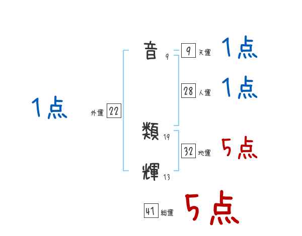 音類輝さんの画数の鑑定結果