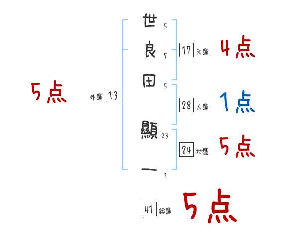 世良田顯一さんの画数の鑑定結果