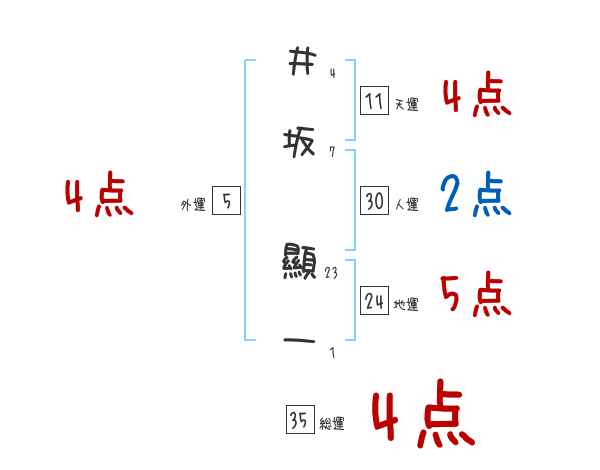 井坂顯一さんの画数の鑑定結果