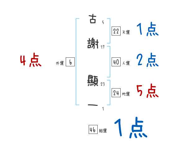 古謝顯一さんの画数の鑑定結果