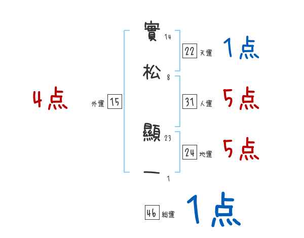 實松顯一さんの画数の鑑定結果