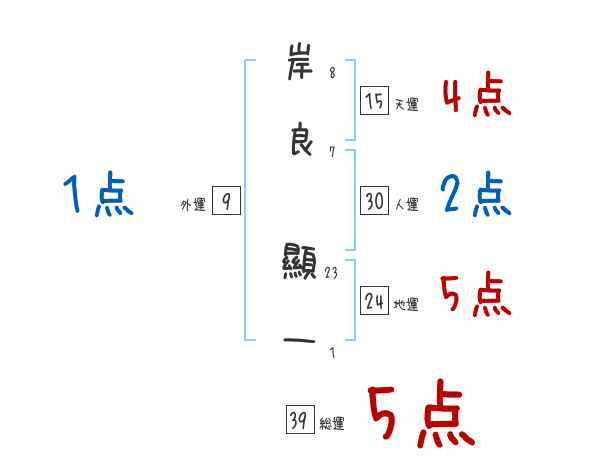 総運![]() | 岸良顯一さんの総運は39画の5つ星!社交性に優れ人望が厚い。人の上に立ち成功する。 あなたの人生を表す1番重要な運勢です。生涯を通じて影響する総合運となり、主に50歳以降の晩年期に影響を及ぼします。 |