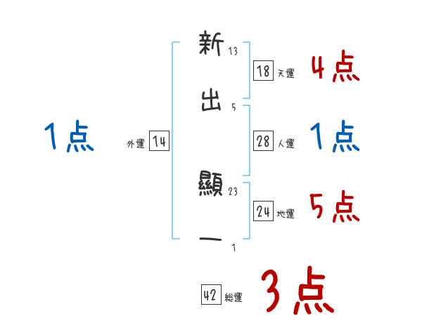 新出顯一さんの画数の鑑定結果