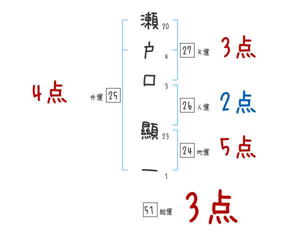 瀬戸口顯一さんの画数の鑑定結果
