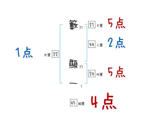 籔顯一さんの画数の鑑定結果