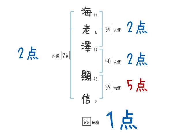 海老澤顯信さんの画数の鑑定結果