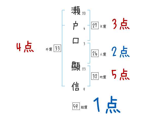 瀬戸口顯信さんの画数の鑑定結果