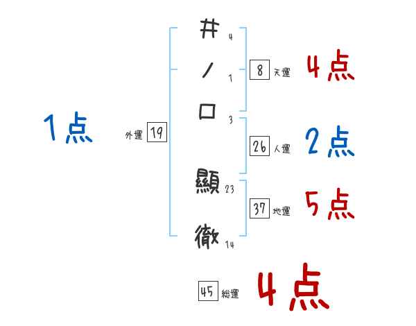 外運![]() | 井ノ口顯徹さんの外運は19画の1つ星!優れた才能を持ちますが、協調性が足りないことも。周りの人と協力する事を意識しましょう。 生活面を象徴する運勢です。外部から受ける影響力を表し、結婚運、家庭運や職場、環境への順応性を表します。 |