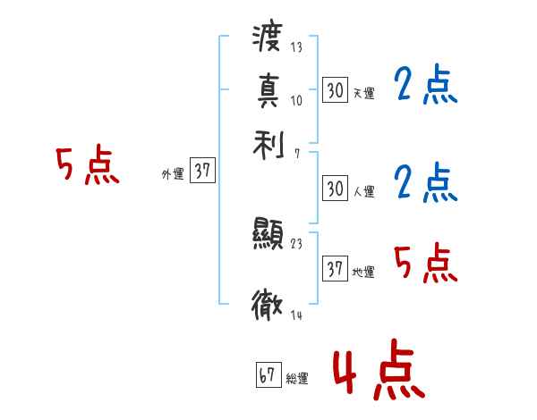 渡真利顯徹さんの画数の鑑定結果