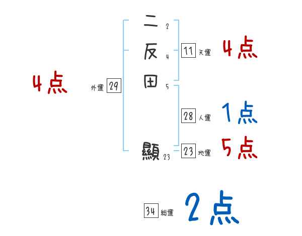 二反田顯さんの画数の鑑定結果