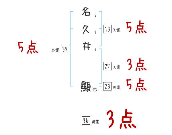 外運![]() | 名久井顯さんの外運は32画の5つ星!柔軟性があり成功する。チャンスが多く金運が良い。 生活面を象徴する運勢です。外部から受ける影響力を表し、結婚運、家庭運や職場、環境への順応性を表します。 |