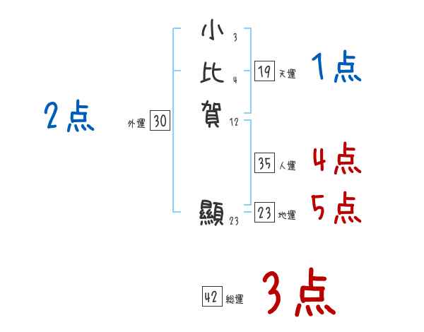 外運![]() | 小比賀顯さんの外運は30画の2つ星!浮き沈みの激しさに注意しましょう。 生活面を象徴する運勢です。外部から受ける影響力を表し、結婚運、家庭運や職場、環境への順応性を表します。 |