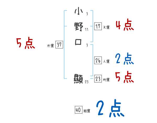 小野口顯さんの画数の鑑定結果