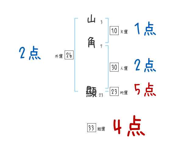 山角顯さんの画数の鑑定結果