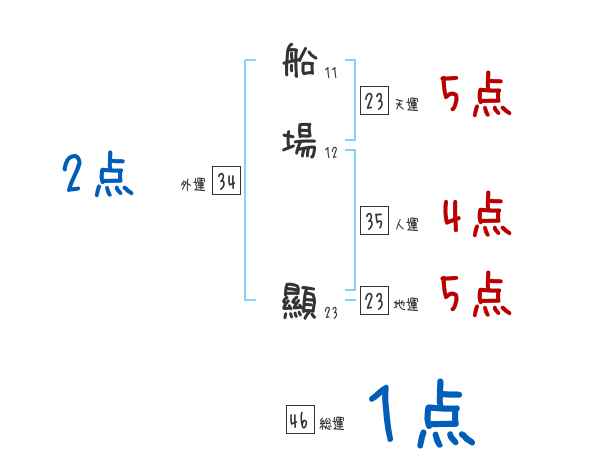 天運![]() | 船場顯さんの天運は23画の5つ星!想像力に優れ活力がある。一代で成功し名誉を手に入れる。 家系が持つ宿命的な運勢を表します。祖先から受け継いだ苗字ですので自分の力が及びません。家柄を象徴します。 |