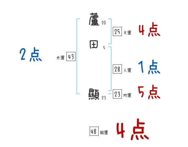 外運![]() | 蘆田顯さんの外運は43画の2つ星!頑固な性格で独立心が強いかも。やや非現実的で浪費に注意しましょう。 生活面を象徴する運勢です。外部から受ける影響力を表し、結婚運、家庭運や職場、環境への順応性を表します。 |
