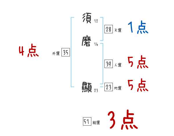外運![]() | 須磨顯さんの外運は35画の4つ星!温厚な性格で感受性が高い。穏和な性格で人望が厚い。 生活面を象徴する運勢です。外部から受ける影響力を表し、結婚運、家庭運や職場、環境への順応性を表します。 |