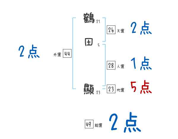 鶴田顯さんの画数の鑑定結果