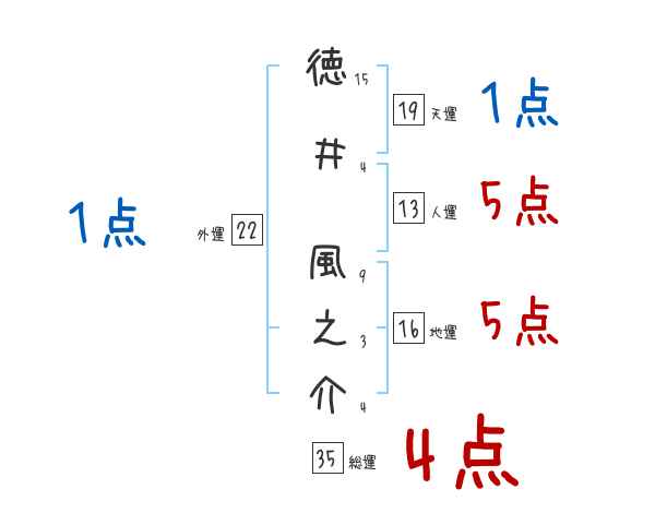 徳井風之介さんの画数の鑑定結果