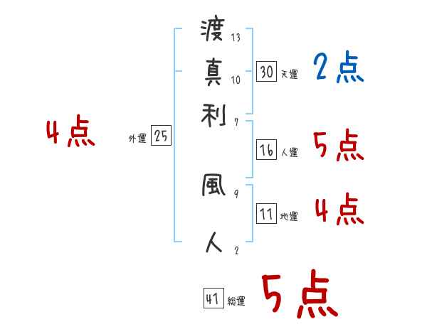 渡真利風人さんの画数の鑑定結果